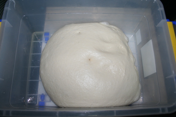 第五、放入抹油的塑膠箱中基本發酵60分鐘